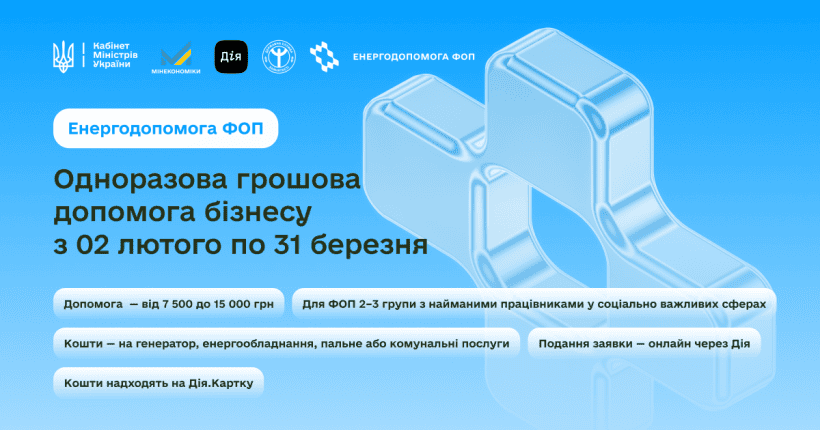 У програмі можуть брати участь ФОПи 2-ї або 3-ї групи, зареєстровані до 1 грудня 2025 року, які мають співробітників та працюють у сферах:
