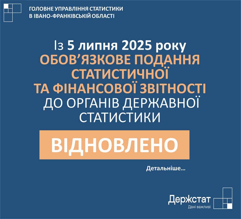 Із 5 липня 2025 року відновили обов’язкове подання статистичної та фінансової звітності. Про це повідомляють у Головному управлінні статистики в Івано-Франківській області.