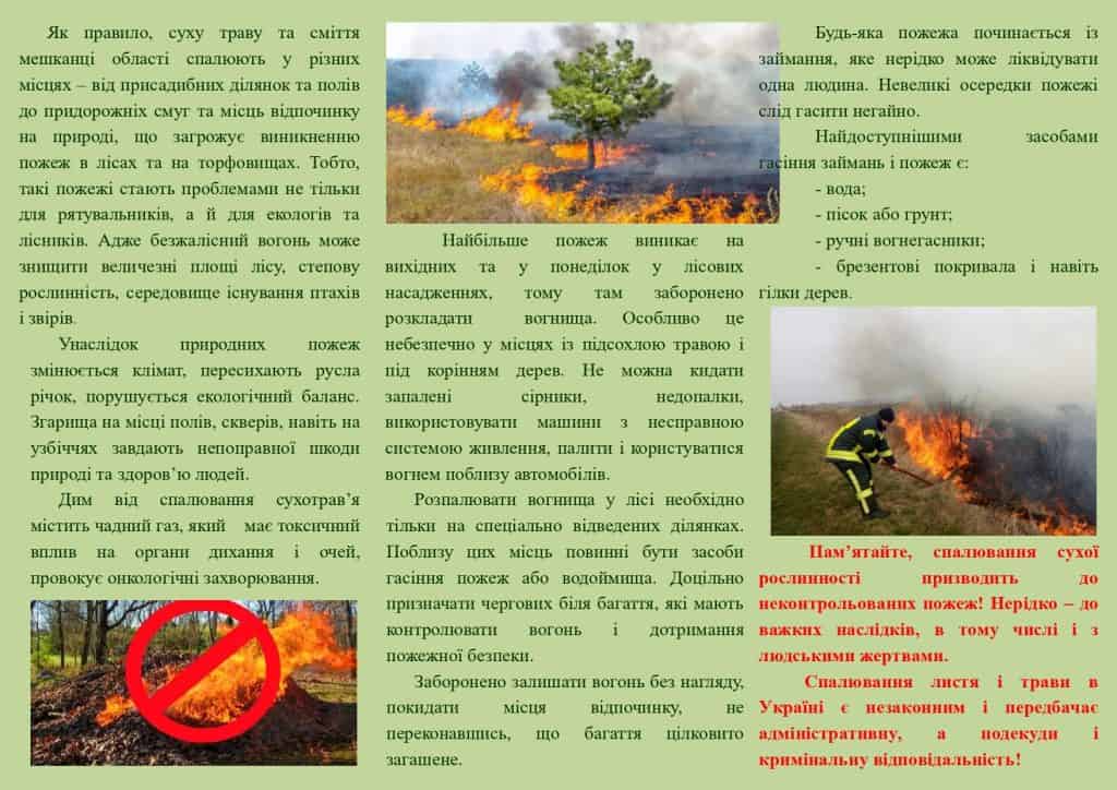 Пам’ятка для населення щодо недопущення спалювання сухостою!