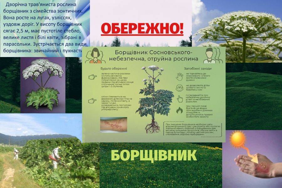 Зважаючи на те, що при контакті борщівник Сосновського спричиняє опіки – всі  роботи з його знищення слід проводити в захисному одязі.