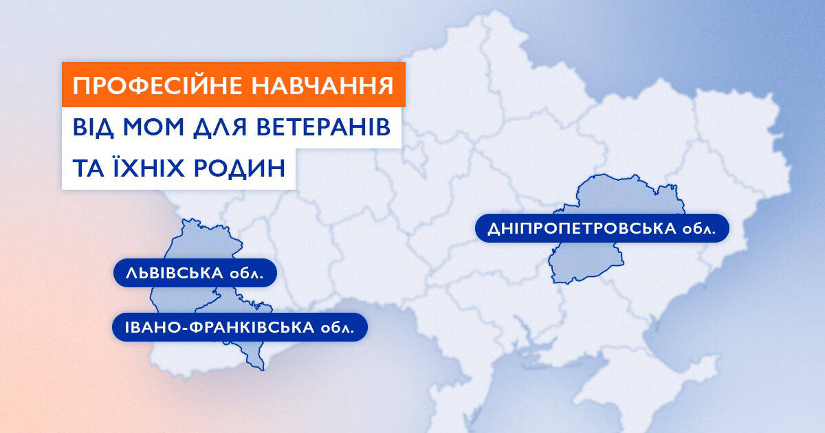 МОМ (Міжнародна організація з міграції), запрошує ветеранів та членів родин військовослужбовців зі Львівської, Івано-Франківської та Дніпропетровської областей долучитися до безкоштовної програми розвитку професійних навичок.
