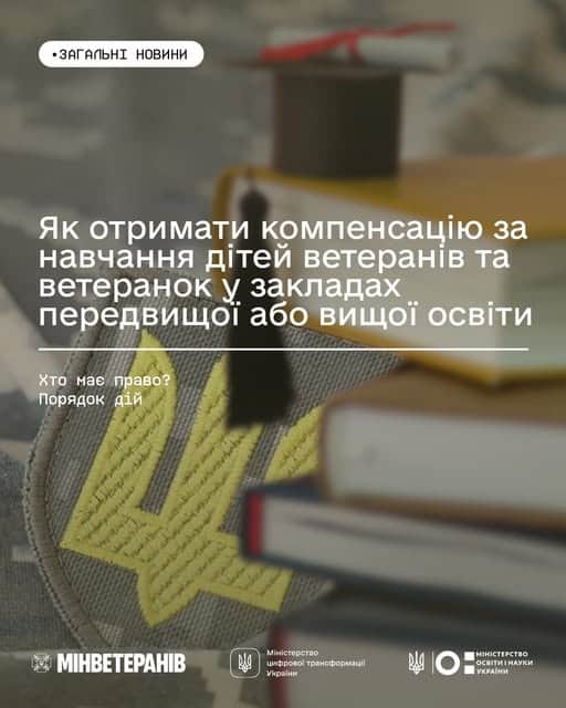 Діти ветеранів та ветеранок, які навчаються за контрактом у закладах фахової передвищої або вищої освіти можуть отримати компенсацію.