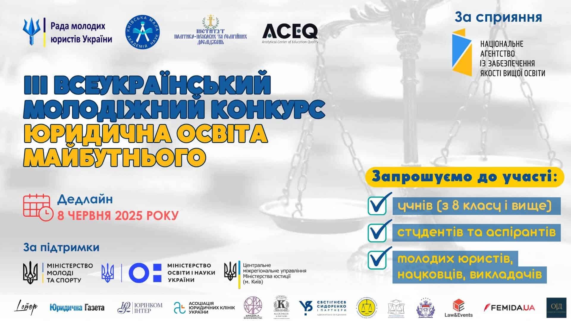 З 30 квітня по 8 червня триває Всеукраїнський молодіжний конкурс «Юридична освіта майбутнього»